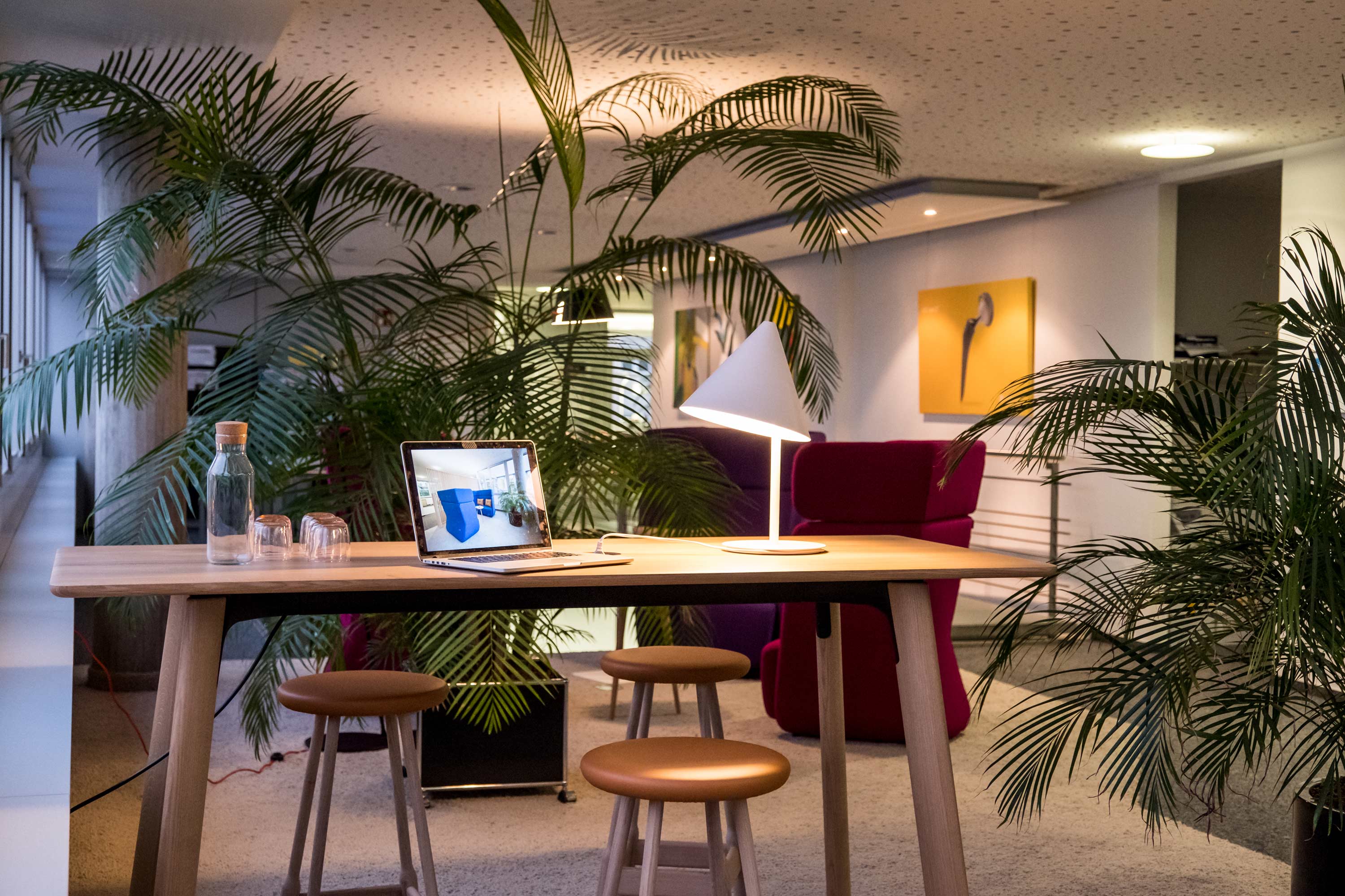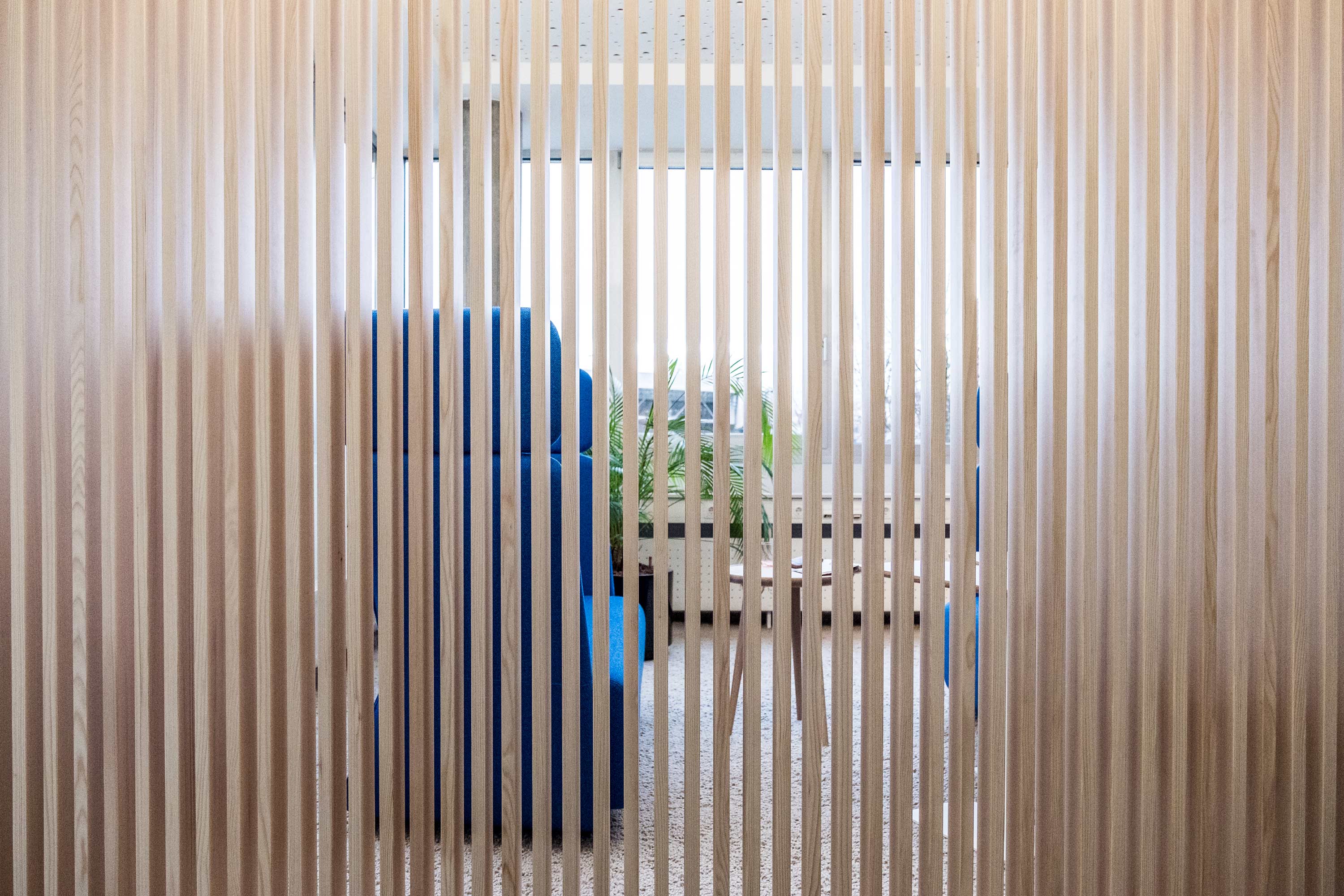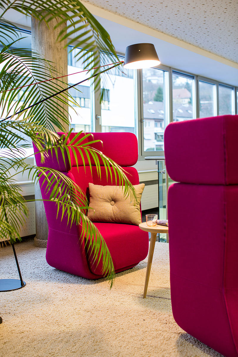Modernisierung der Mensa und die Erschaffung eines neuen Aufenthaltsbereiches mit Einbindung von Akustikmodulen als Kunstobjekt im Foyer des Gebäudes. Das Streben nach Nachhaltigkeit und die Rückbesinnung auf die Natur als eine Reaktion auf die Schnelllebigkeit und Reizüberflutung unserer digitalen Zeit.